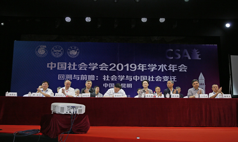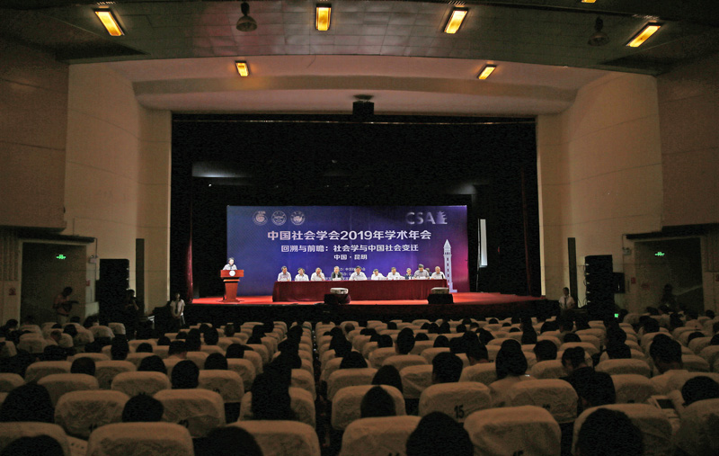 7月13日上午,由中国社会学会主办、云南大学民族学与社会学学院承办的中国社会学会2019年学术年会在云南大学东陆校区庆来堂开幕。本次年会的主题为:“回溯与前瞻:社会学与中国社会变迁”。年会吸引了来自北京大学、清华大学、中国社会科学院、中国人民大学、复旦大学、南京大学、中山大学、武汉大学、厦门大学等高校与科研机构近2000名专家学者齐聚云南大学,共襄盛举。