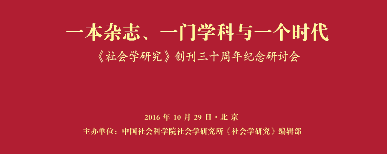 主题发言:《社会学研究》与中国社会学发展三十年(6人,每人25分钟)