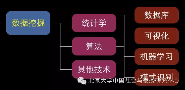 因此,数据挖掘,是多种技术的应用。首先得学统计学;其次是用于多个方面的算法。我认为,算法,是未来社会学学生至少应该懂的东西;第三,一些其他的技术。其中,算法涉及到数据库技术、可视化技术、机器学习技术、模式识别技术等。