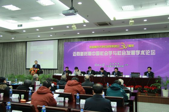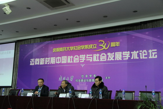 在南开大学社会学学科建立32周年和社会学系成立30周年之际,南开大学社会学系和社会建设与管理研究院共同举办“迈向新时期中国社会学与社会发展”学术论坛,以学术交流的方式庆祝南开大学社会学系成立三十周年。中国社会学会名誉会长陆学艺研究员、中国社会学会会长宋林飞教授、中国社会学会副会长潘允康研究员等来自32所高校和研究单位的70余位社会学著名学者于2012年12月8-9日汇聚南开大学,参加了此次论坛,共同研讨我国社会学和社会发展过程中的所面临的重要理论和实践议题。