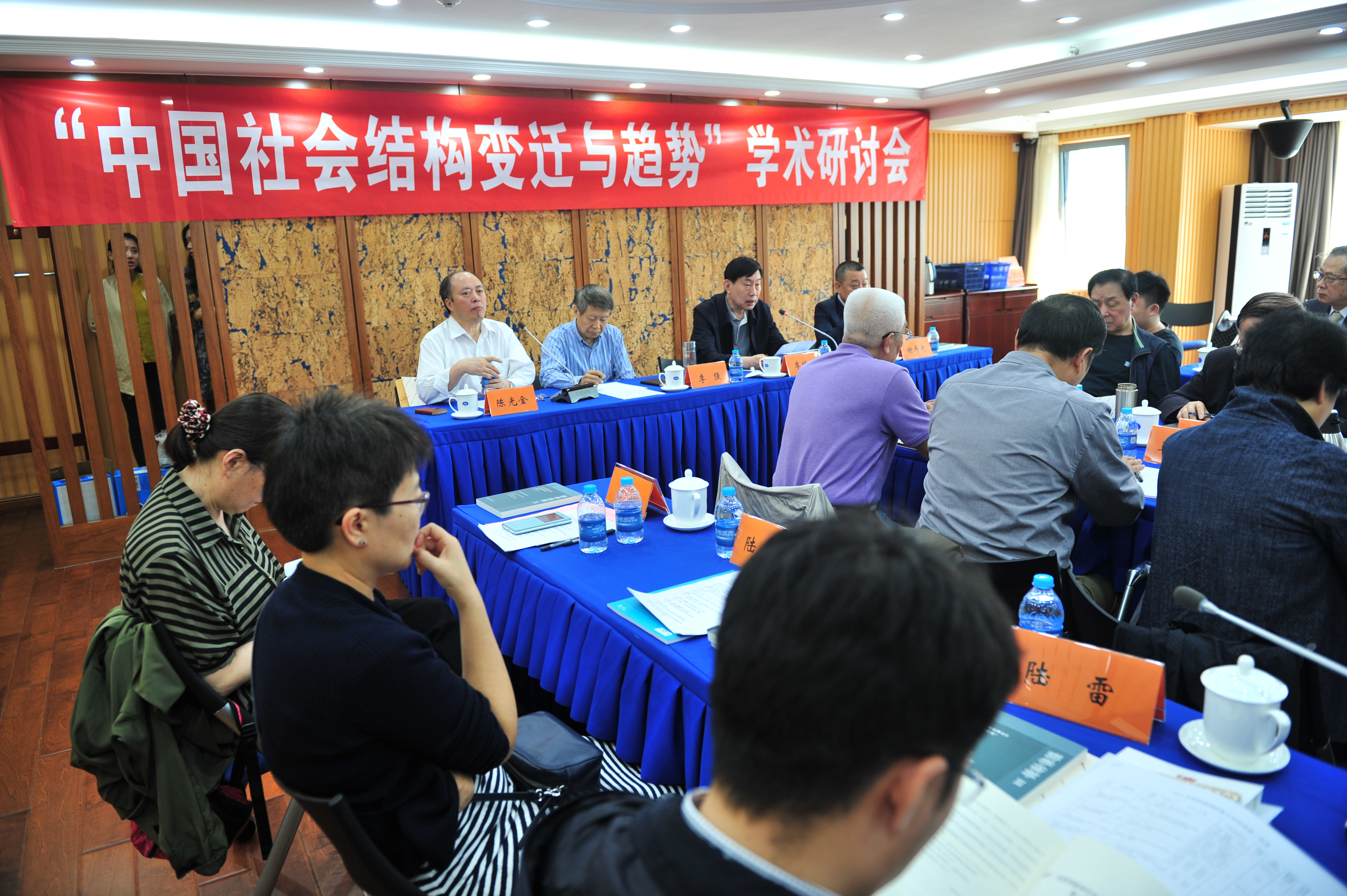 随后,进行“中国社会结构变迁与趋势”学术研讨会,研讨会上下单元分别由北京大学社会学系王思斌教授,社科文献出版社社长、基金会学术委员会副主任、秘书长谢寿光先生主持。研讨会期间,与会专家学者围绕陆学艺先生提出的“调整社会结构、搞好社会建设、促进社会进步是社会学学者应该完成的学术使命与责任”交流研讨。发言的有江苏省政府参事室主任宋林飞教授,发言主题:我国新社会阶层的特点与社会建设;中国社会学会会长、清华大学社会科学学院院长李强教授,发言主题:中国离橄榄型社会还有多远?;清华大学社会学系孙立平教授,发言主题:两个转型与中国经济未来的前景;吉林大学常务副校长、邴正教授,发言主题:中国社会文化结构的多元化与协调性矛盾;中山大学社会学系蔡禾教授,发言主题:社区社会结构和基层治理;中国社会科学院社会学研究所所长、陈光金研究员,发言主题:转移支付对中国收入不平等的影响;清华大学社会学系郭于华教授,发言主题:社会转型的难与不难;中国政法大学社会学院应星教授, 发言主题:历史研究与中国社会结构的变迁; 北京大学社会学系王思斌教授,发言主题:社会韧性与经济韧性:作用与建构;北京大学社会学系刘世定教授,发言主题:经济结构调整的动力机制;中国社会科学院社会学所副所长、张翼研究员,发言主题:中国阶级阶层结构的变迁及对未来社会的影响;清华大学社会学系沈原教授,发言主题:建设中国的劳工社会学。