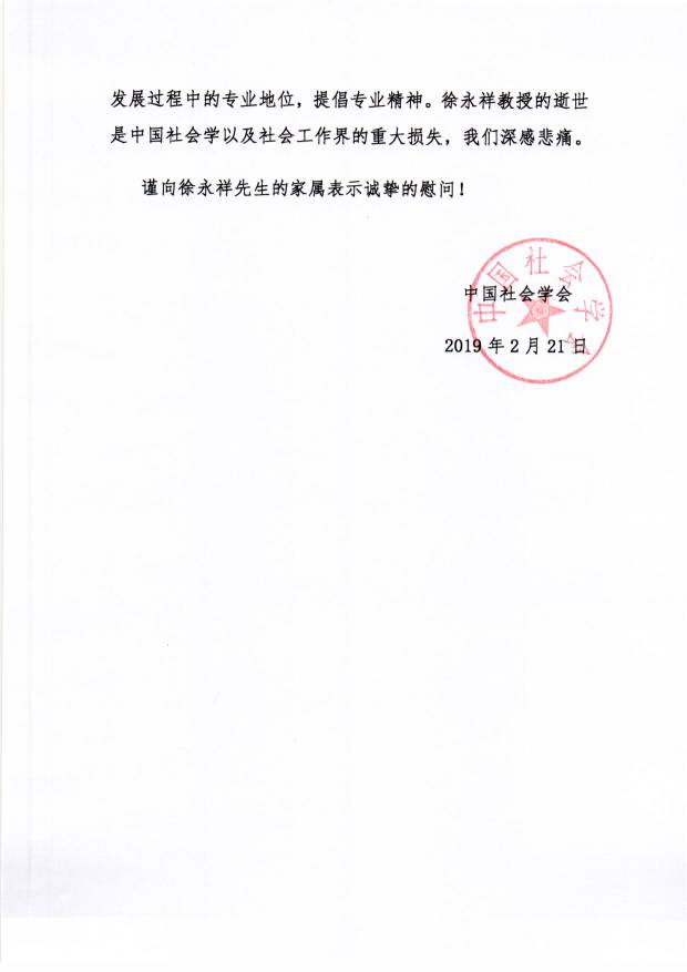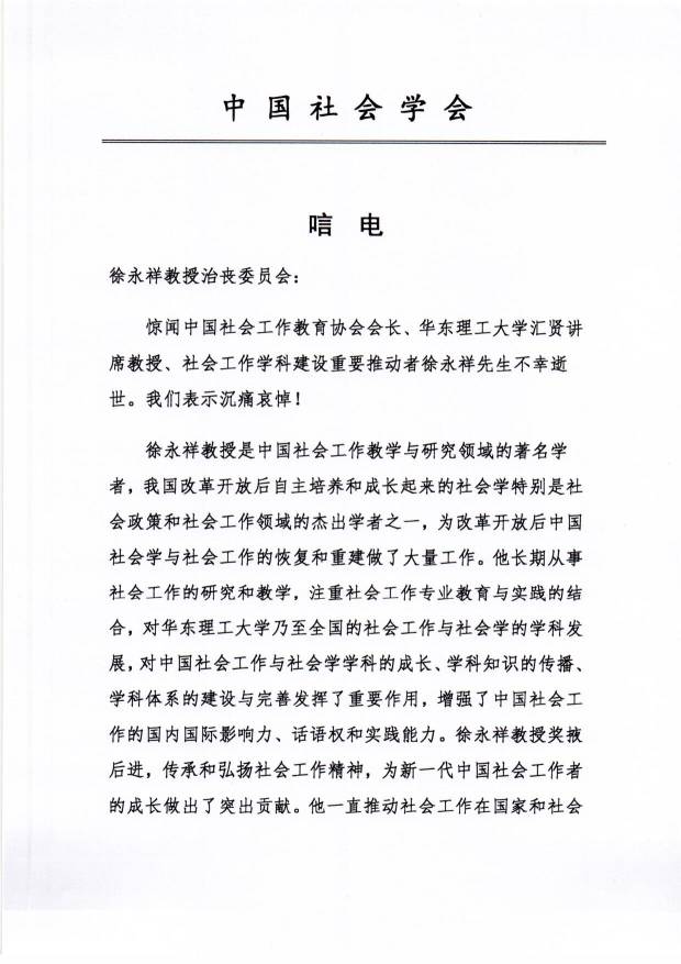 >> 【唁电】沉痛哀悼徐永祥教授